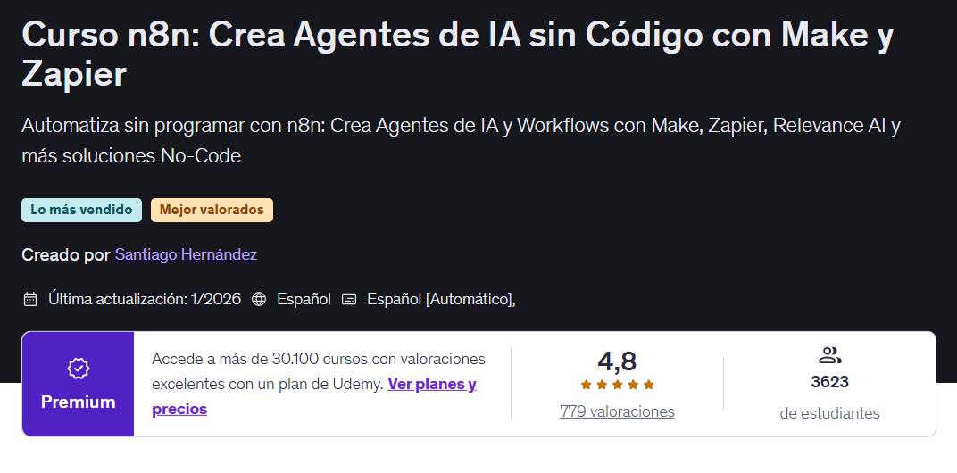 Este curso es la guía definitiva para dominar la creación de Agentes de IA utilizando las herramientas más potentes del mercado: n8n, Make, Zapier y Relevance AI. Aprenderás a construir flujos de trabajo que integran modelos como OpenAI, DeepSeek y Gemini para automatizar tareas complejas, desde la atención al cliente en WhatsApp hasta el análisis de contratos con tecnología RAG y asistentes de voz con ElevenLabs.